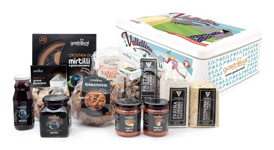 Il cofanetto Cima Piazzi è il regalo gastronomico perfetto per chi cerca la tradizione valtellinese: un percorso di gusto che si snoda tra i sapori tipici del grano saraceno e del mirtillo, dal primo piatto al dolce. Oltre a pizzoccheri della Valtellina IGP e polenta potrai scoprire il gusto unico del ragù di cervo o del sugo ai porcini. E per deliziarti a fine pasto basterà scartare la bisciola, chiamata “panettone valtellinese”, e lasciarsi stupire dai sapori di un tempo.