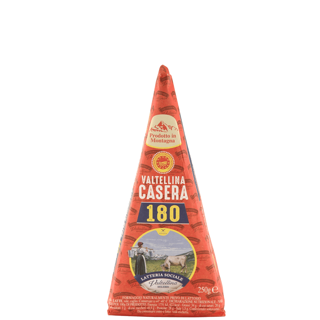 Un periodo di stagionatura superiore ai 180 giorni, sugli “scalere” in legno d’abete che permettono al formaggio di traspirare, rende il sapore del Valtellina Casera DOP più intenso e leggermente piccante, con sentori di frutta secca in sottofondo.